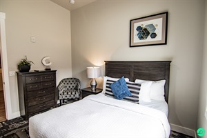 This unit is found on the third floor (top unit) and has a tall vaulted ceiling for an extra spacious feel. For those who have a hard time with stairs, there is no need to worry because there is an elevator that is in service 24/7.