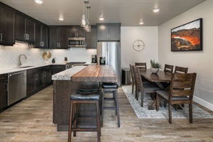 3 Bedrooms • 3 Bathrooms (2 full, 1 half) 3 Baths (2 full, 1 half) • Sleeps 7-12A luxury condo with amazing views and private hot tub! The open and inviting living area is the perfect place to relax after a day of outdoor adventures. The chef friendly kitchen include stainless steel appliances, granite counter tops, and enough pots, pans, silverwares for basic cooking needs. Plenty of trailer parking for any off-road adventure. The amazing year-round heated pool has multiple hot tubs, water features, fires, grills, and bocce ball. Kids love the walk-in portion of the pool.